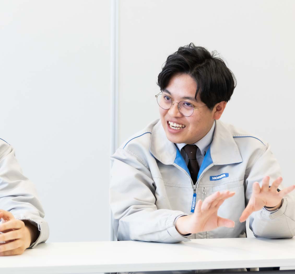 ここでは、グループ各社から集まった機械・電気・情報系専攻出身の若手社員たちに、学生時代の経験や入社のきっかけ、現在の仕事とそのやりがいについて語り合ってもらいました。若手社員が感じるHORIBAで働く「リアル」をお届けします。