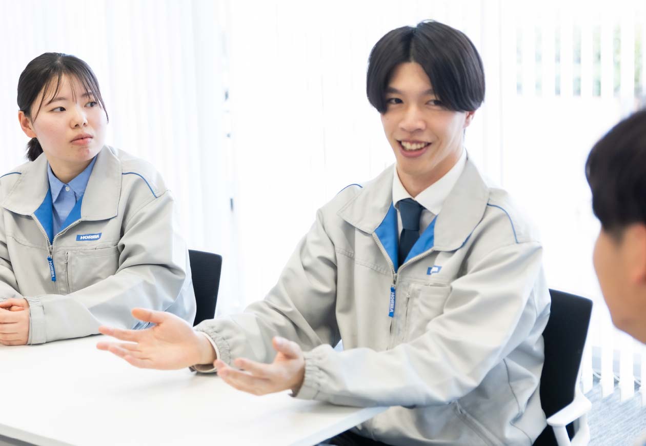 田中 私も計測技術に特化したメーカーを志望していたことがきっかけです。私の研究は人間工学がテーマで、重心移動や筋電位の計測が欠かせず、計測技術の奥深さを実感していました。それでHORIBAに興味を持って調べるうちに、堀場エステックのマスフローコントローラーが半導体製造の要であると知って、計測技術で世界に貢献できると思い志望しました。また、会社説明会に登壇していた先輩社員のお話から、若くしてチャレンジできる環境が整っていると感じたのも理由の一つです。